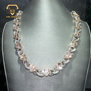 Hip Hop Chaine Jóias VVS 925 Sterling Silver Rose Ouro Branco Dois Tons Banhado 18mm Diamante Moissanite Coração Cubano Link Chain